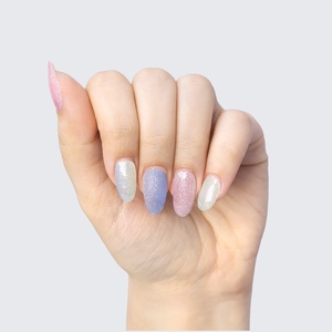 Our GLAM & GO gel nail wraps ensure that no matter how complex your chosen nail design, the application process remains incredibly simple. Our GLAM & GO gel nail wraps require no glue, base coat, or top coat—just peel them off the packaging, apply them to your nail, trim to size, cure twice, and voilà!