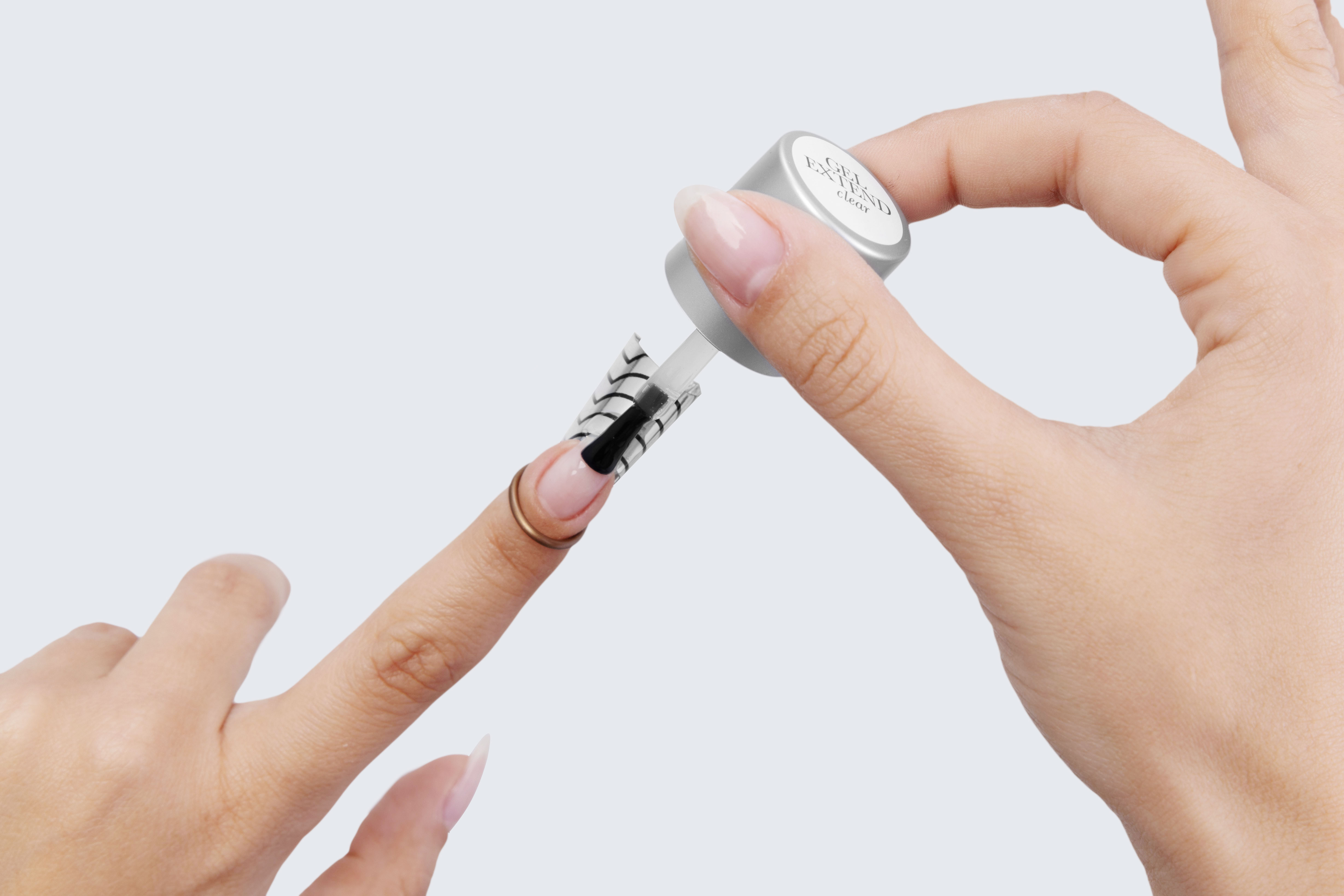 Gel Extend is a DIY product made of a high shine hema-free formula that lasts up to 21 days, for all levels, whether you are an expert or a beginner. This hard structure, high viscosity sculpting gel allows you to add length to your nails without the damaging effects of glue-on tips and acrylics. It can be used to add up to 2 mm of length to the natural nail, or to help reduce the occurrence of breakage in weak, cracked nails.