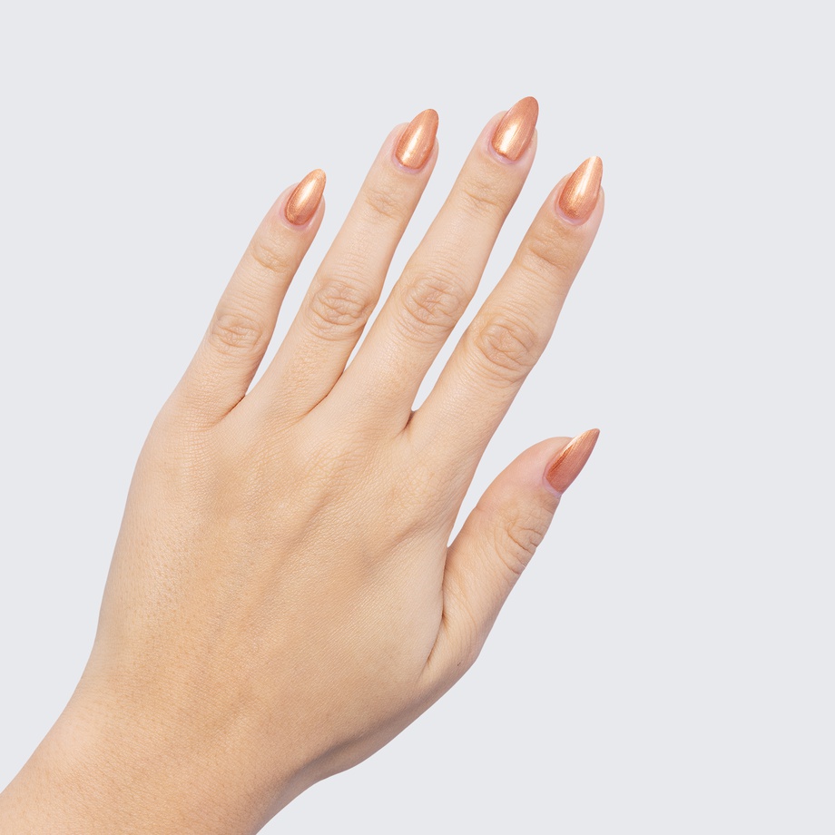 The gold sheen of this rich copper polish is timeless.